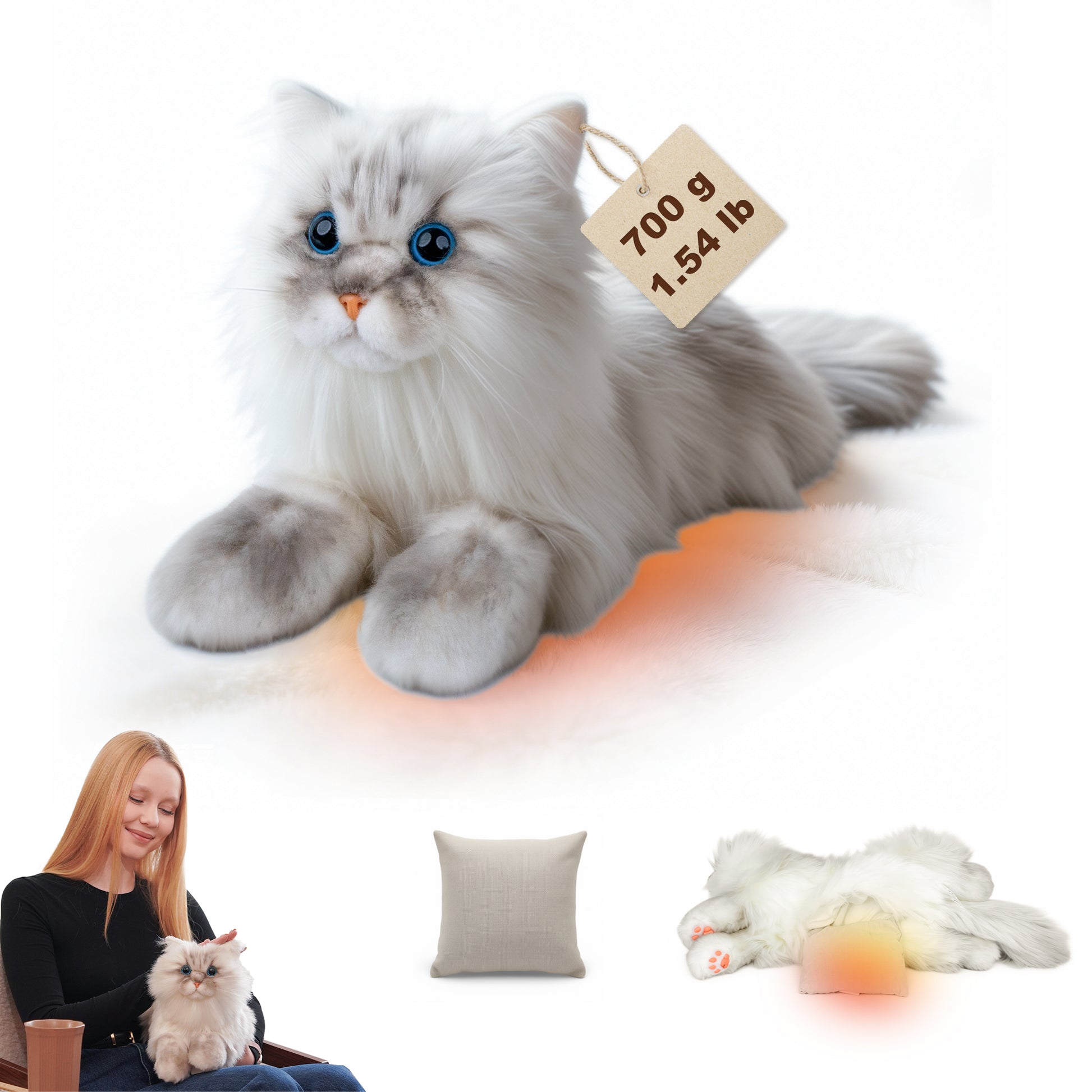 Gray Cat Lifelike Weighted Heated Cat for Comfort & Calm with Microwavable Pack