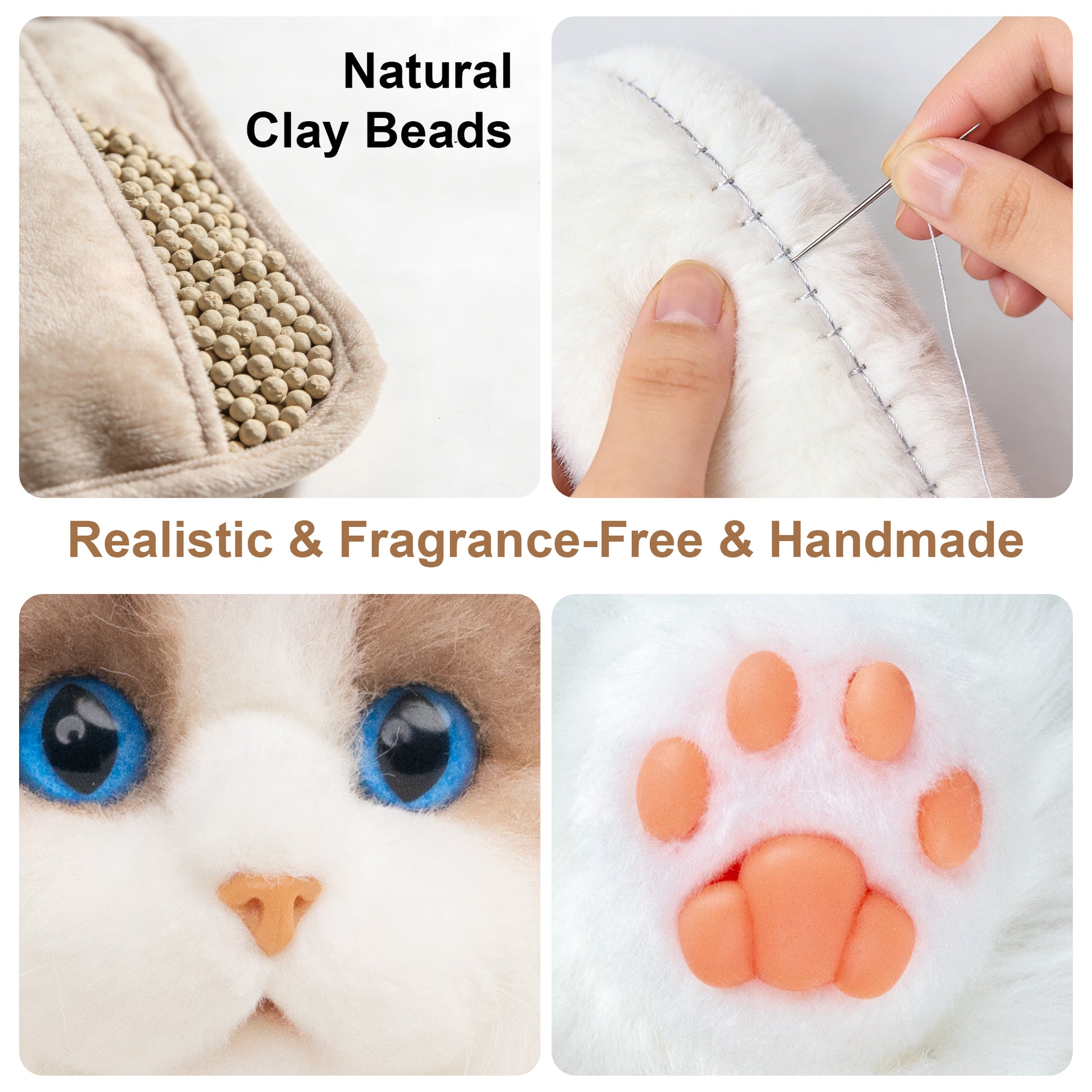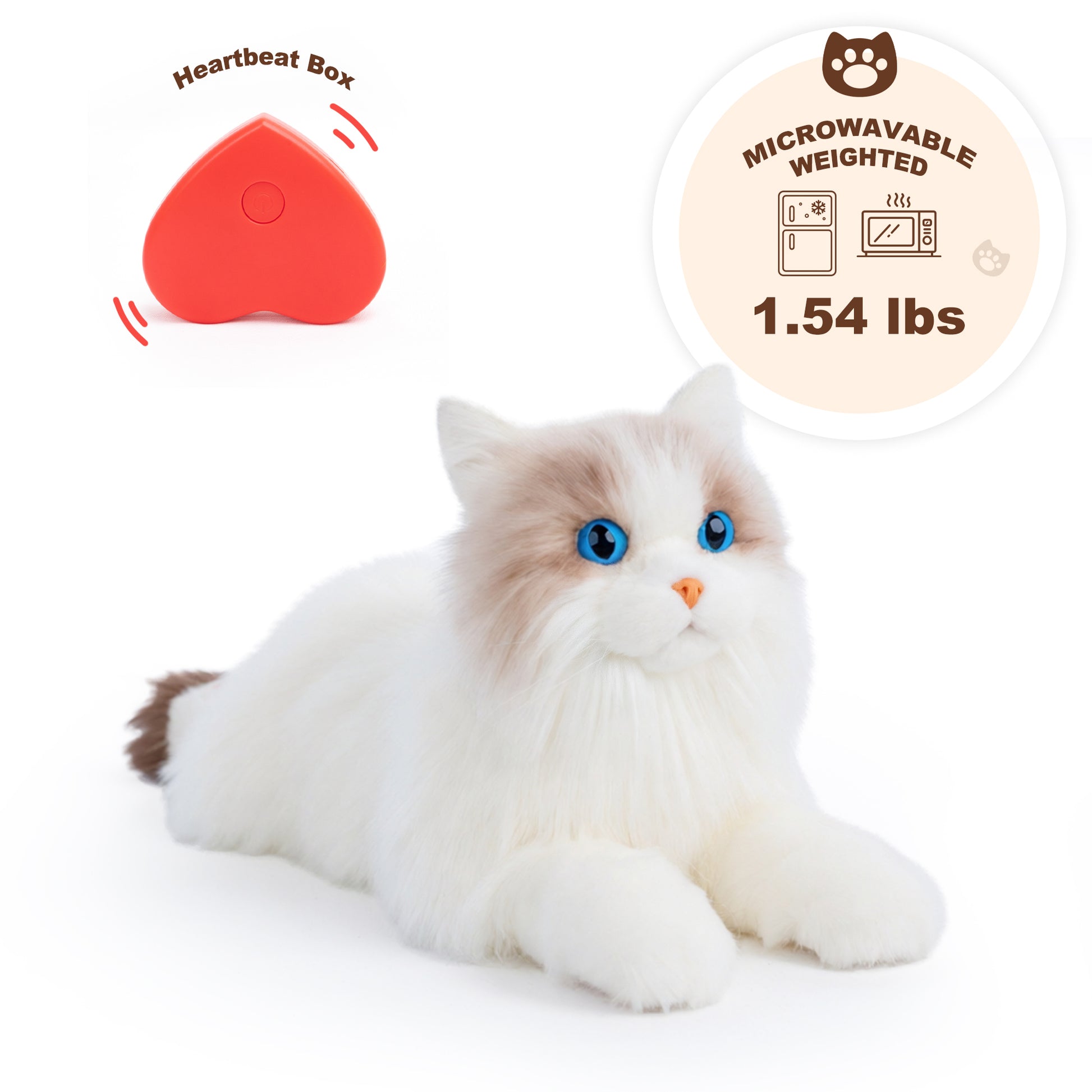 Lifelike Weighted Heated Cat for Comfort & Calm with Microwavable Pack